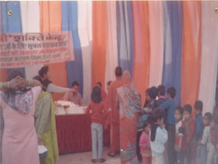 HEALTH CAMPS: On bimonthly basis we organize health camps with an intention to benefit the community people of the target area. Wide publicity through loudspeakers, distribution of handbills, banners, puppet shows and street plays are the few publicity measures we adopt prior organizing the health camp because this results in a huge turnout during the camp date. A huge number of people take benefit of the camp in some form or the other. People avail the facility of free health check-up and distribution of medicines in the camp. The camp offers separate counters for General Physician OPD, Gynecology OPD , and Pediatric OPD. These bimonthly camps also offer theme based separate counter for example family planning, Child & Maternal Health, Immunization, DOTS, ICTC, Diabetes etc. All the visitors get information about the various schemes run by Delhi Govt. through a different information counter at the starting point of the camp. |